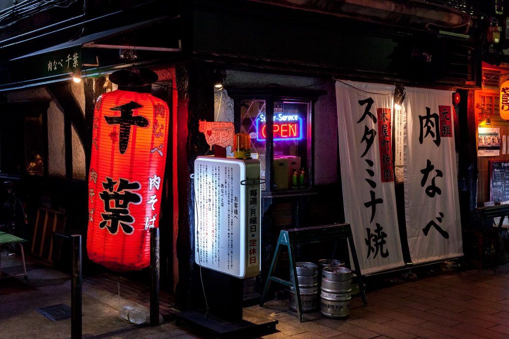 I noticed that restaurants in this area have signs illuminated by red and yellow paper lantern.