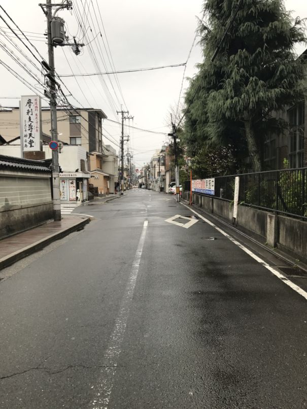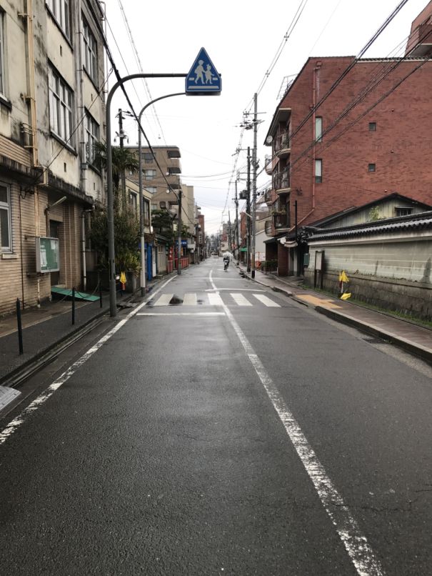 Street close by our apartment. It was raining a bit so I guess people are staying in...
