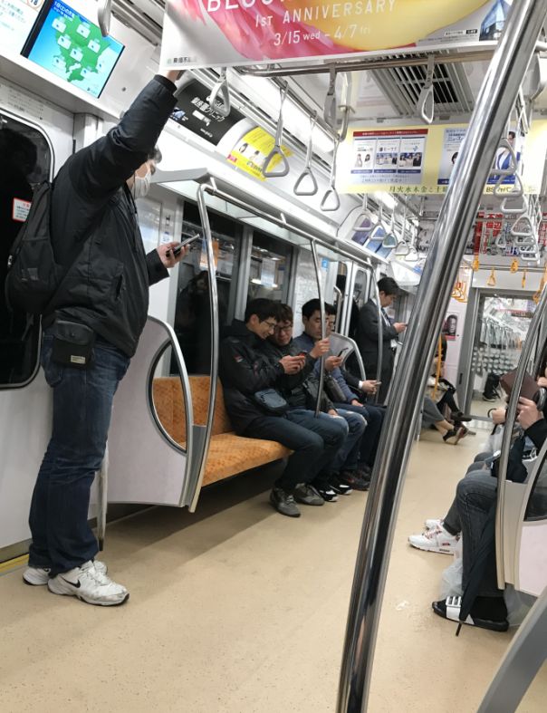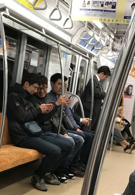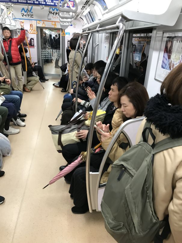 In the subway, everybody is checking their phone.
