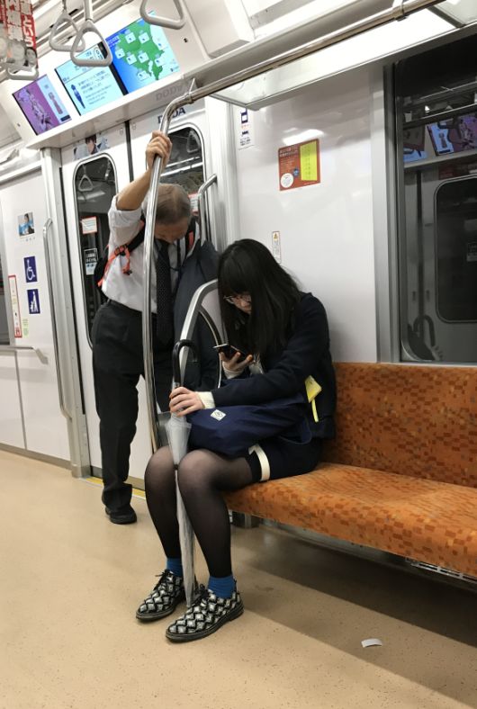 ![]() This man was totally drunk and was barely able to hold on the rail but check out the girl sitting down... she is checking her phone and did not even bother to look up. |