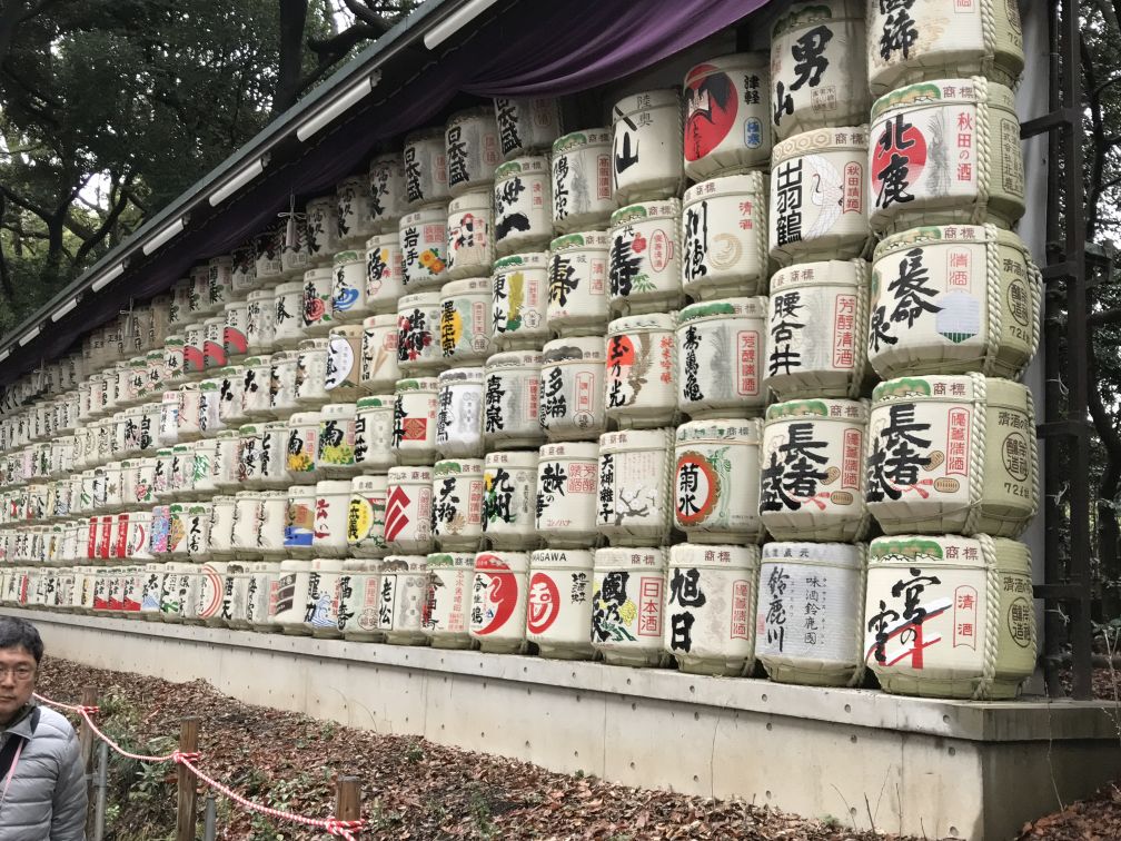 Meiji Jingu Shrine Sake Barrels called kazaridaru, which means “decoration barrels.”The barrels on display are empty, at least in physical terms. Spiritually, they’re chock full of significance. These barrels are a decorative display giving honor to the gods. Traditionally, the people of Japan have always had a connection between the gods and the Sake they produce. Each year many barrels of Sake are donated. The Sake is used for religious festivals and the barrels form a unique display outside the shrine.