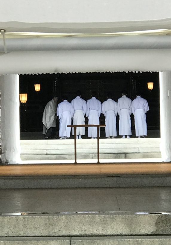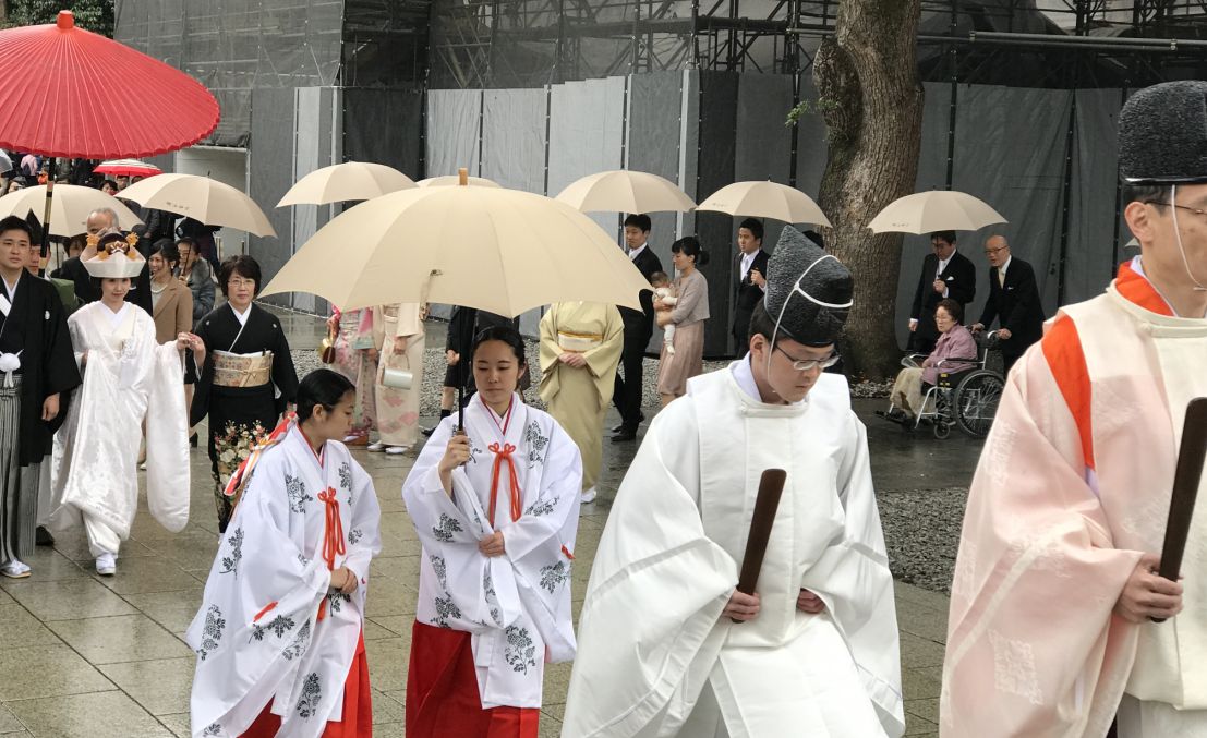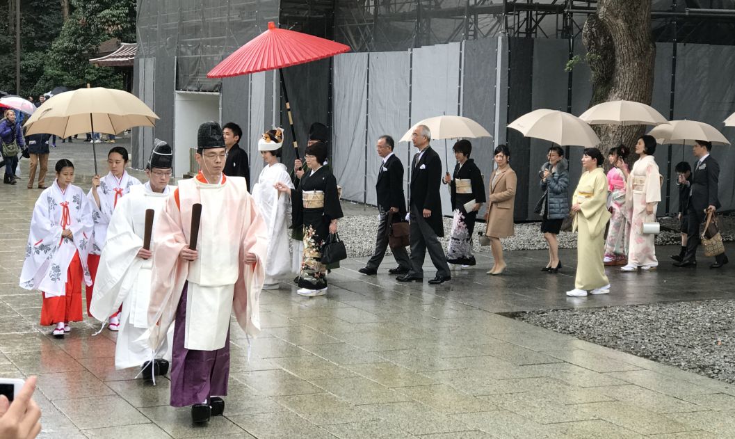 Shinto priests leading the way..