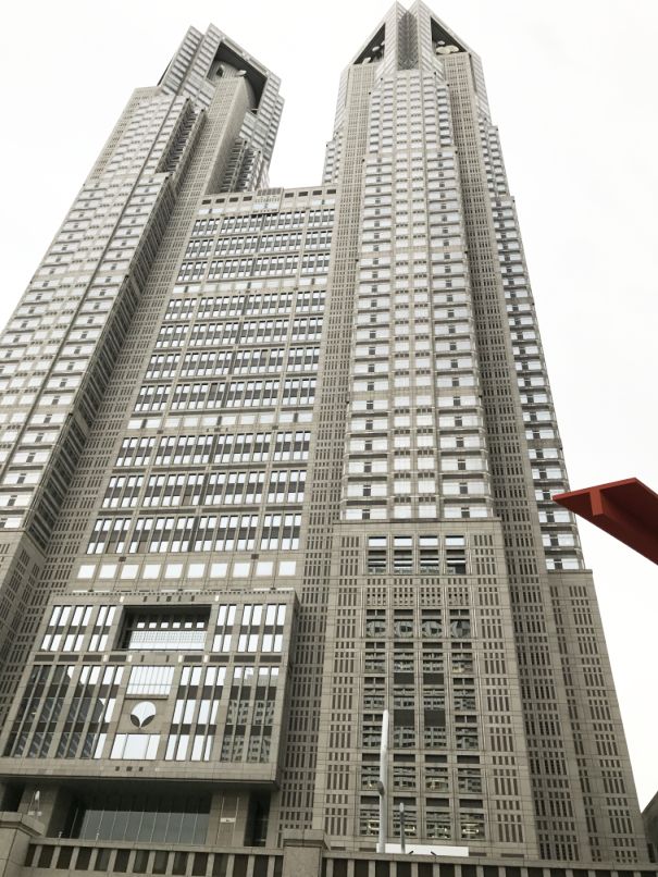 The building consists of a complex of three structures, each taking up a city block. The tallest and most prominent of the three is Tokyo Metropolitan Main building with 48 stories tall that splits into two sections at the 33rd floor.