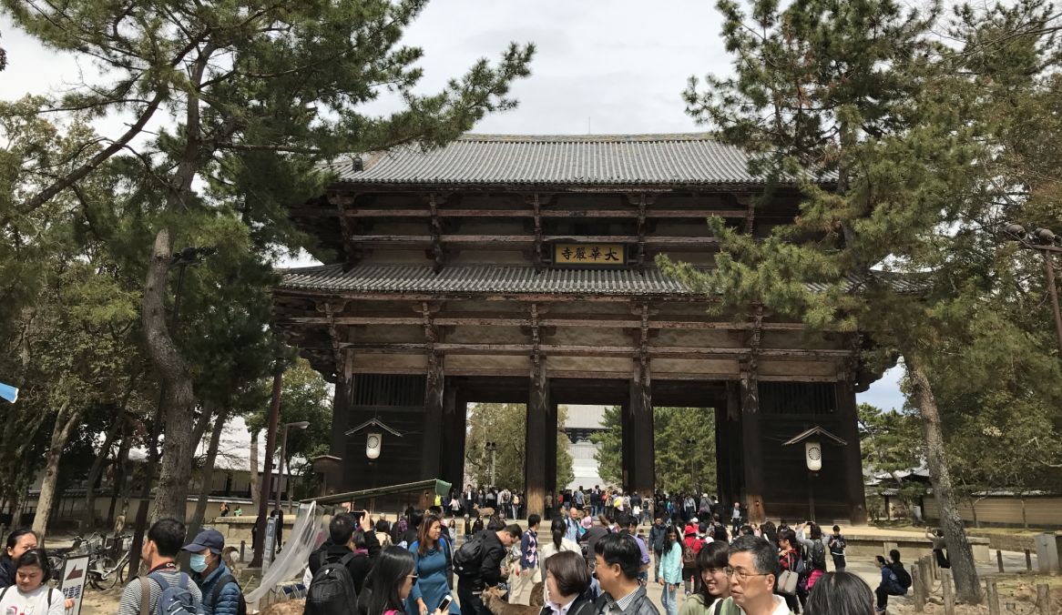 This is the court yard leading to Todai-ji temple- Lots of people visiting the temple.