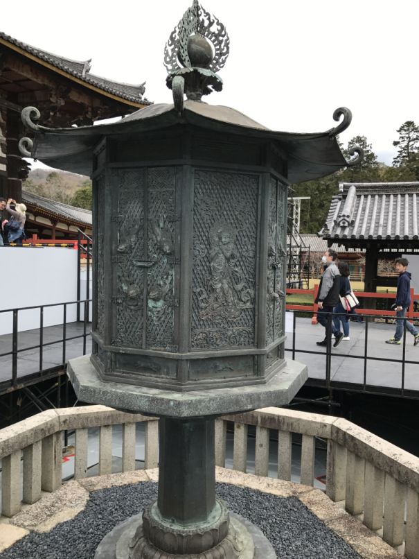 Octagonal lantern from the 700's in front of Todai-ji temple is classified as a national treasure.