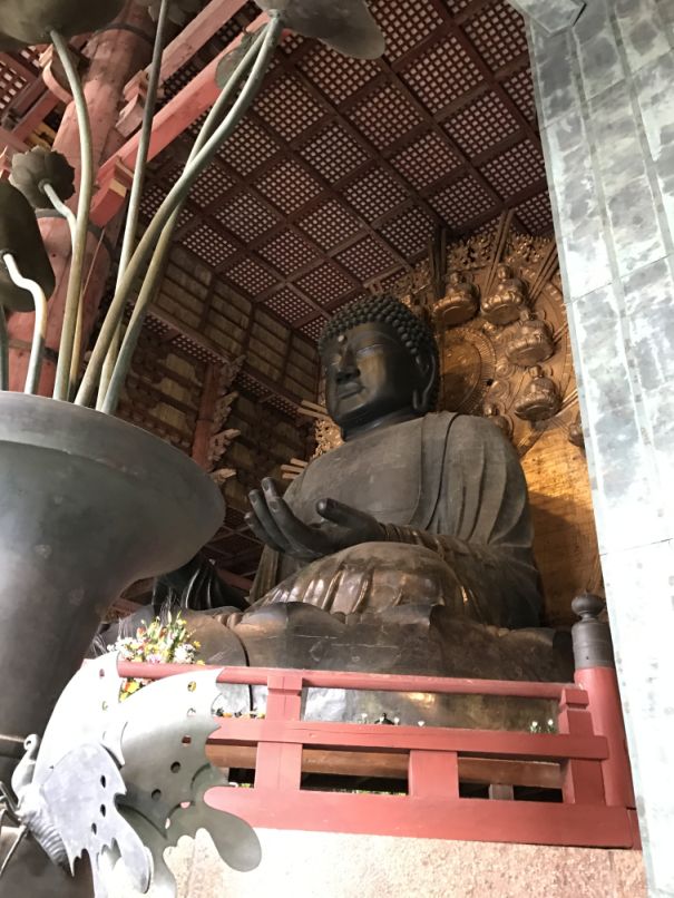 Despite having been damaged and destroyed multiple times due to fire, earthquakes and accident, the Buddha’s head fell off in 855 and both the buildings and the statues have been continually repaired. Today Tōdai-ji, or the Great Eastern Temple complex, and the Great Buddha Hall it contains are in excellent shape.