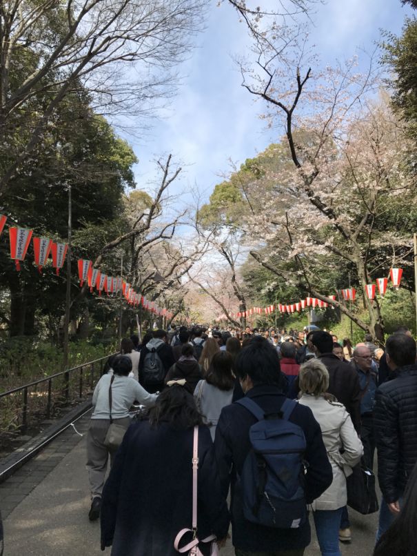 Ueno Park is renowned as a cherry blossom-viewing destination since the Edo period (1603-1868), and is considered by many to be the ultimate location to enjoy cherry blossoms in Tokyo. It is also one of Japan's most crowded, noisy and popular spots for cherry blossom parties with more than 1000 trees along the street leading towards the National Museum and around Shinobazu Pond. Ueno Park's blossoms typically open 1-3 days ahead of the blossoms in other spots in the city.