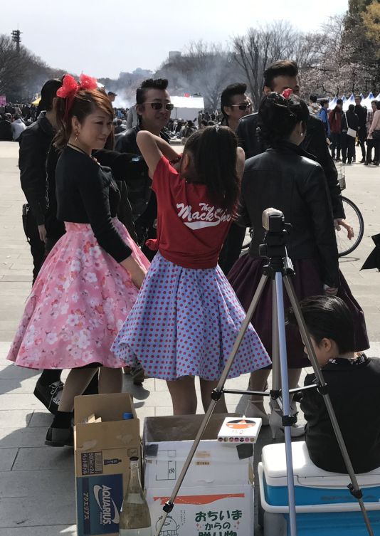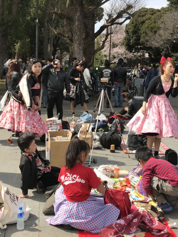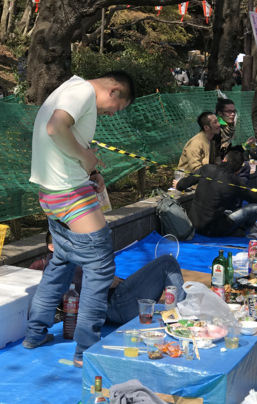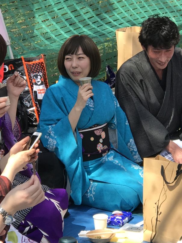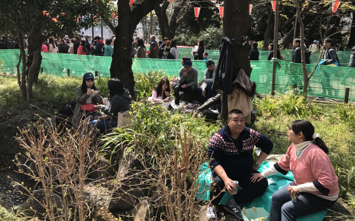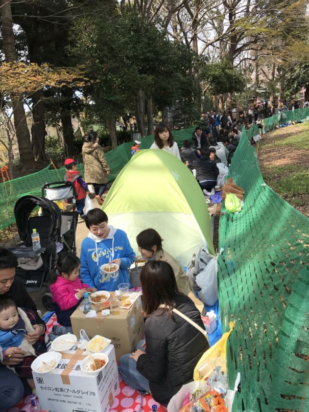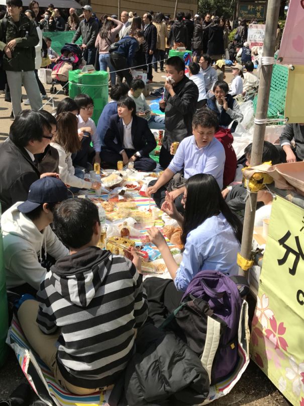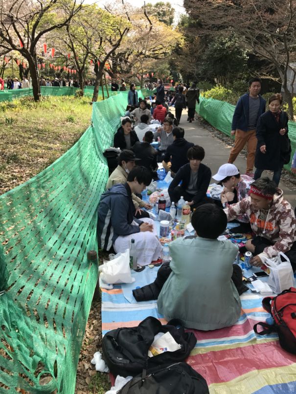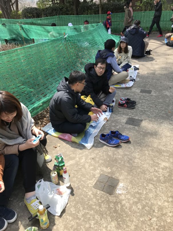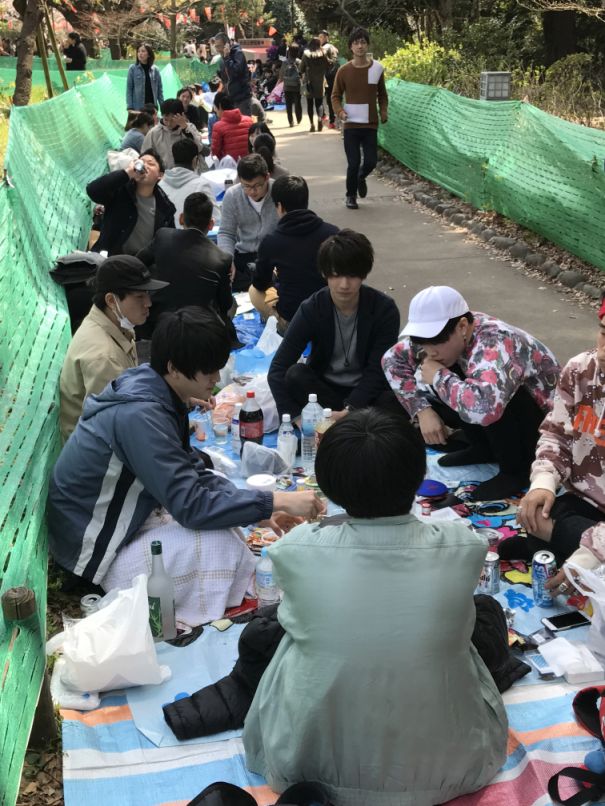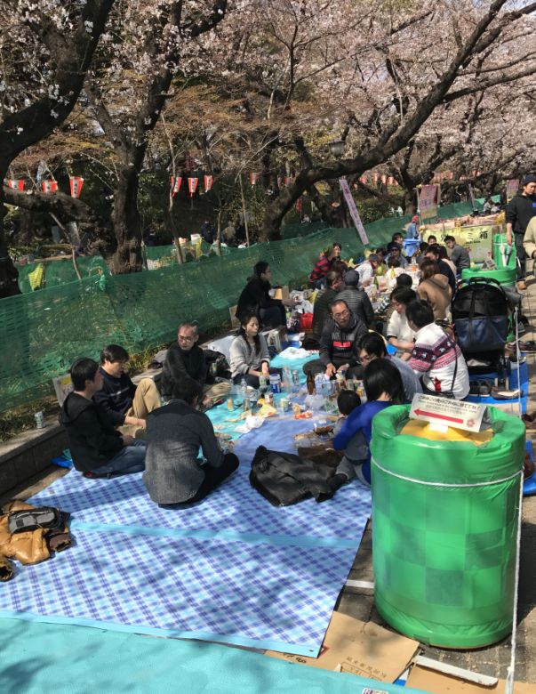 Japanese enjoy "Hanami" which is the Japanese traditional custom of enjoying the transient beauty of flowers and in this case they all here to enjoy the cherry blossoms.