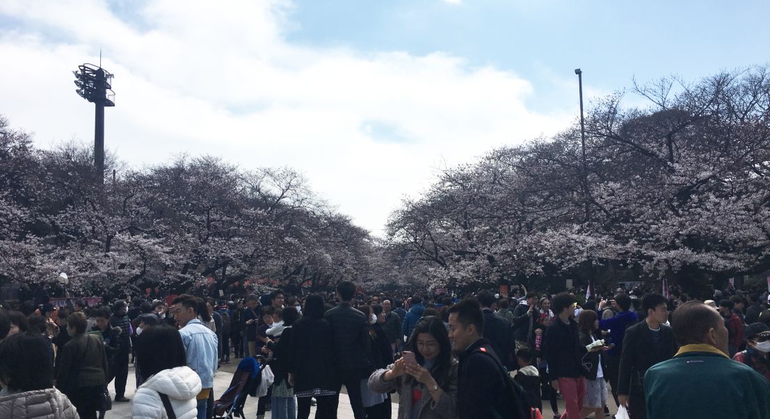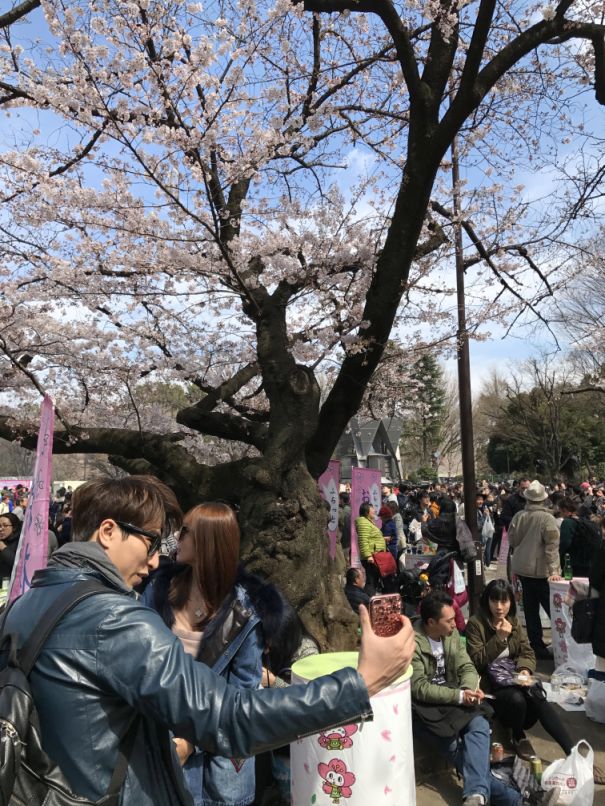 Today is the first day of the cherry blossom at the park and there are so many people....