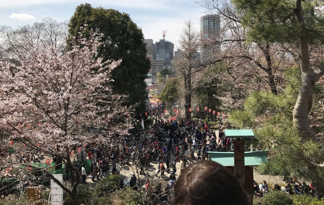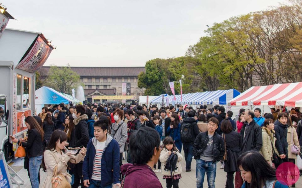 Ueno Station is adjacent to Ueno park. Get off here and follow the crowd to the park.