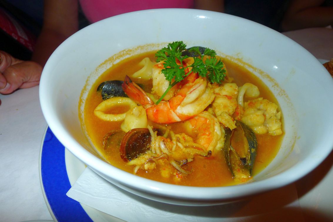 Thuy got the Bouillabaisse, monk, rock fish, shrimp, mussels, Stew