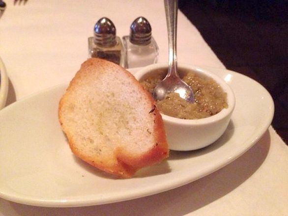 Compliment of the chef: olive, garlic spread with toasted bread |
