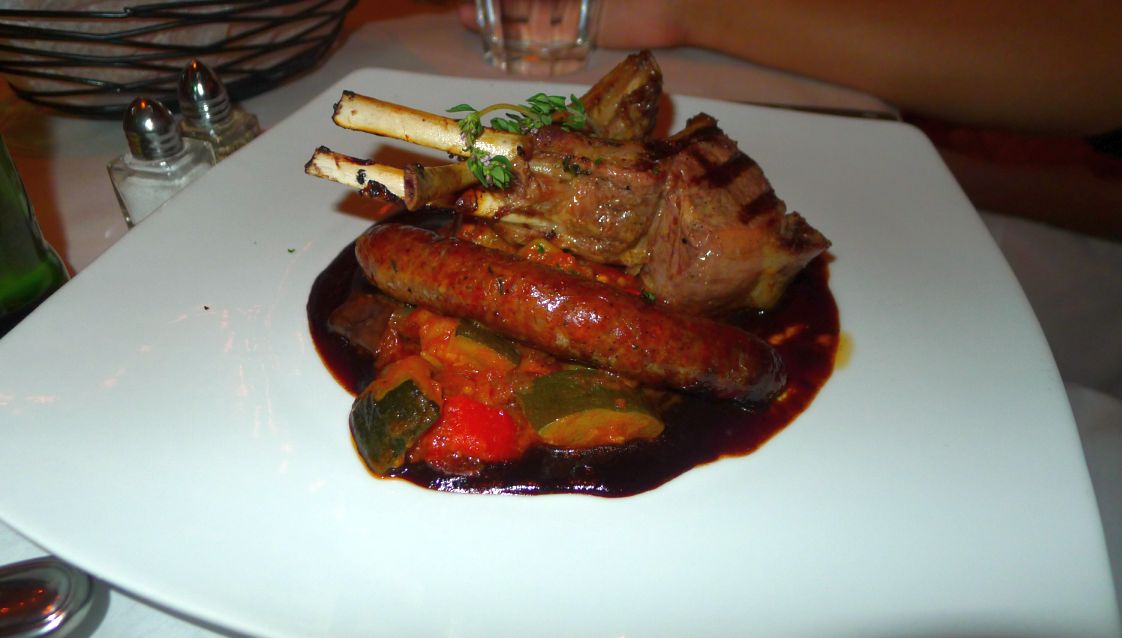 Kevin ordered the Lamb mix, chops and sausage, ratatouille