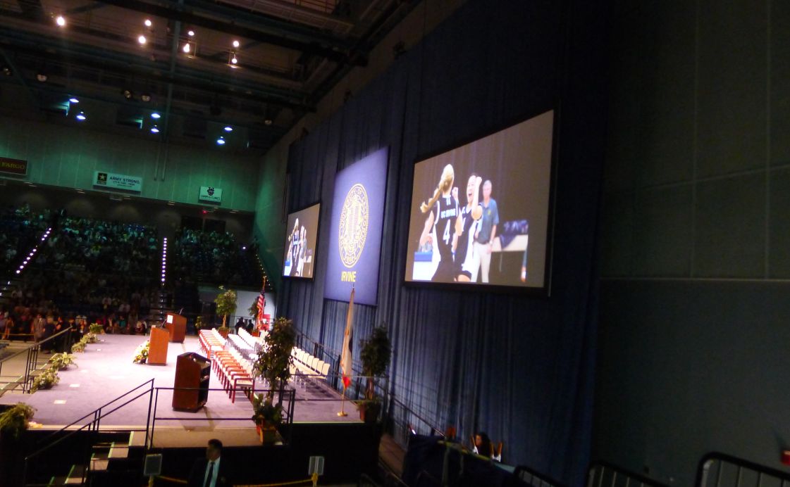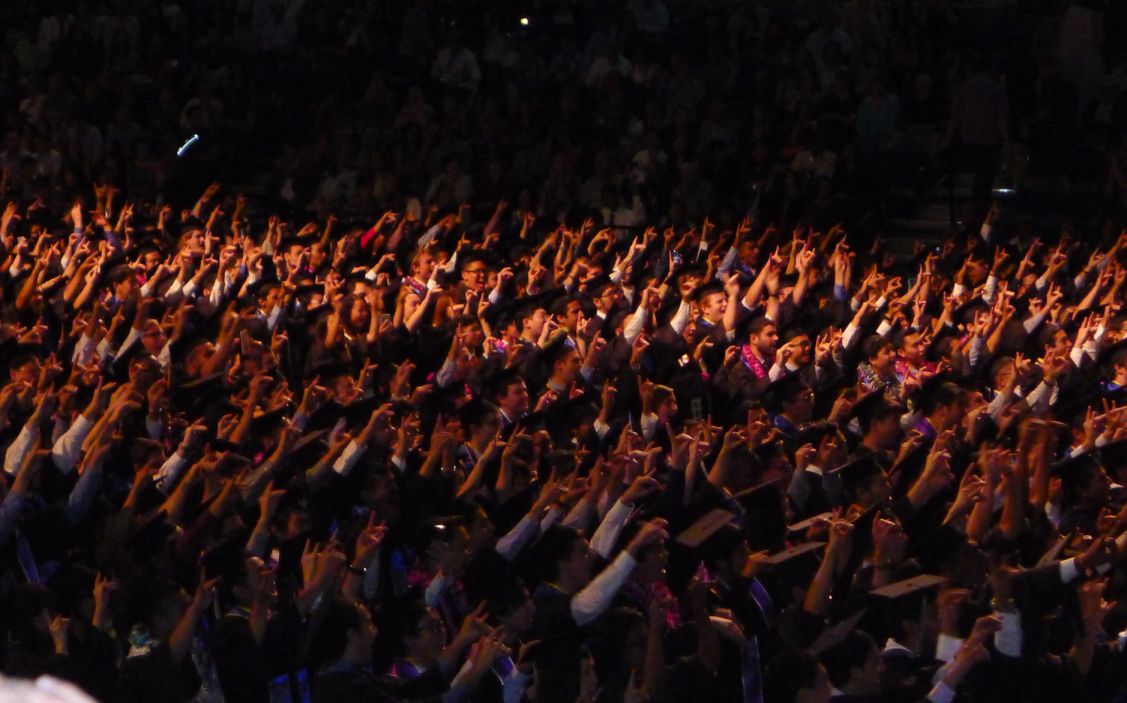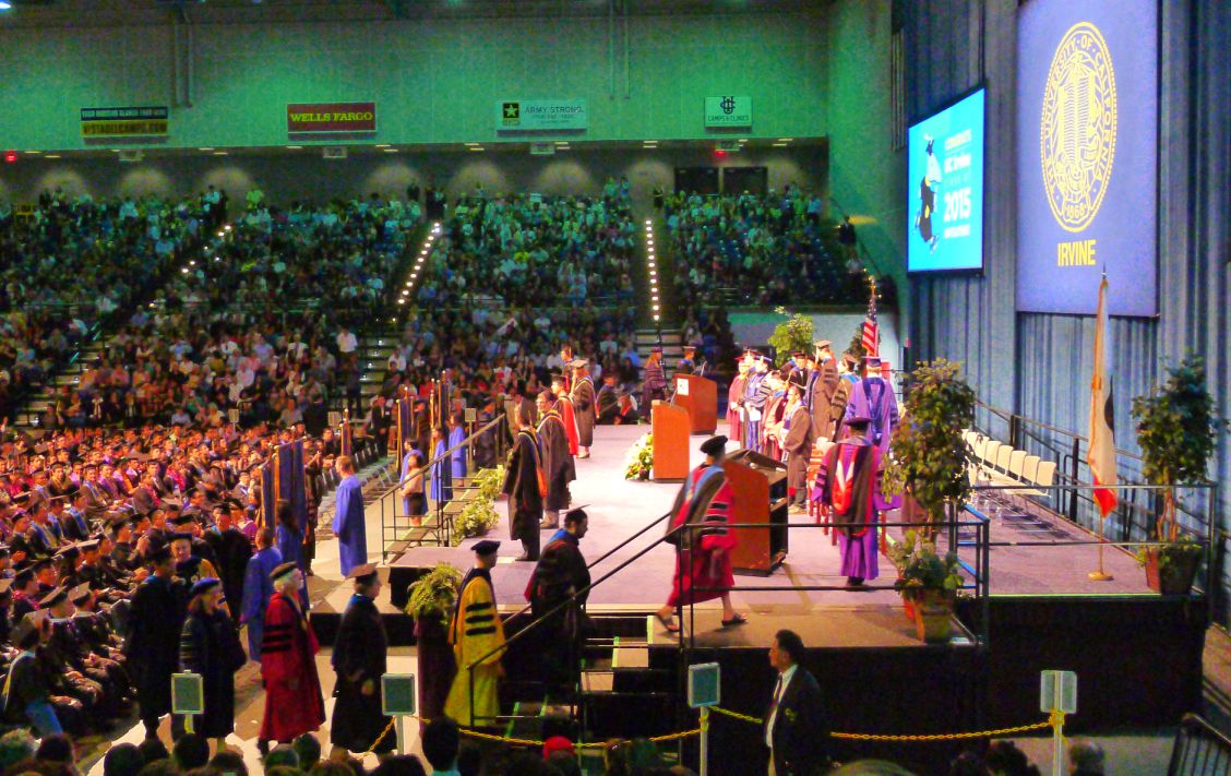 The ceremony is over is and the last thing the speaker asked all the students to say "ZOT, ZOT, ZOT" .Student raised their hands and it unison they said : "ZOT, ZOT, ZOT".