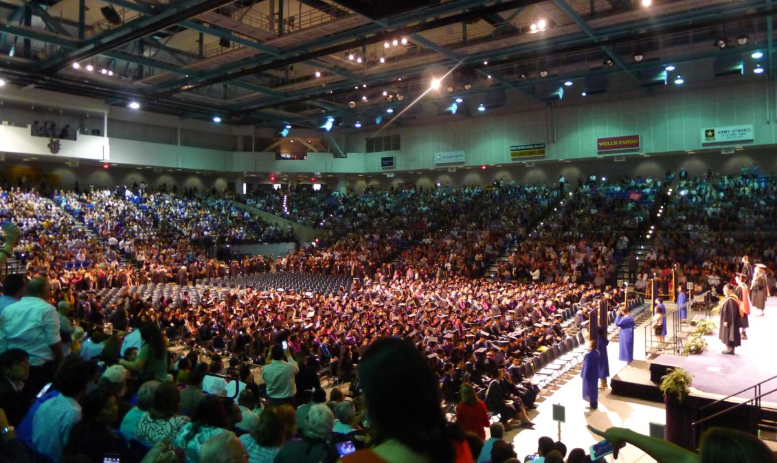 Students graduation with a bachelor degree are next and the room is starting to fill up.