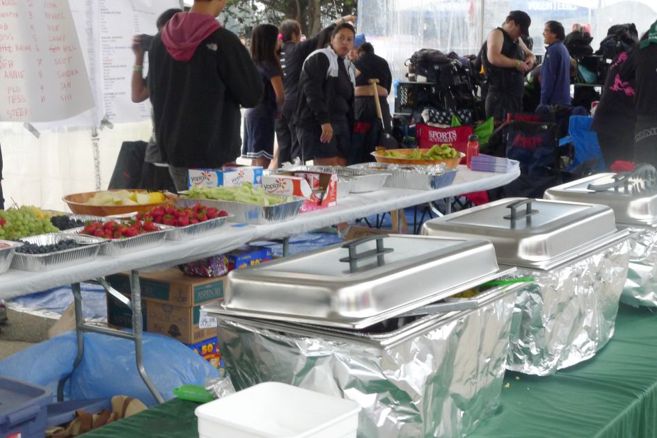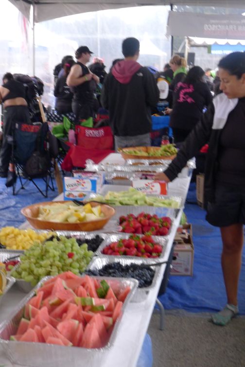 This the breakfast buffet inside the Kaiser Permanente tent.