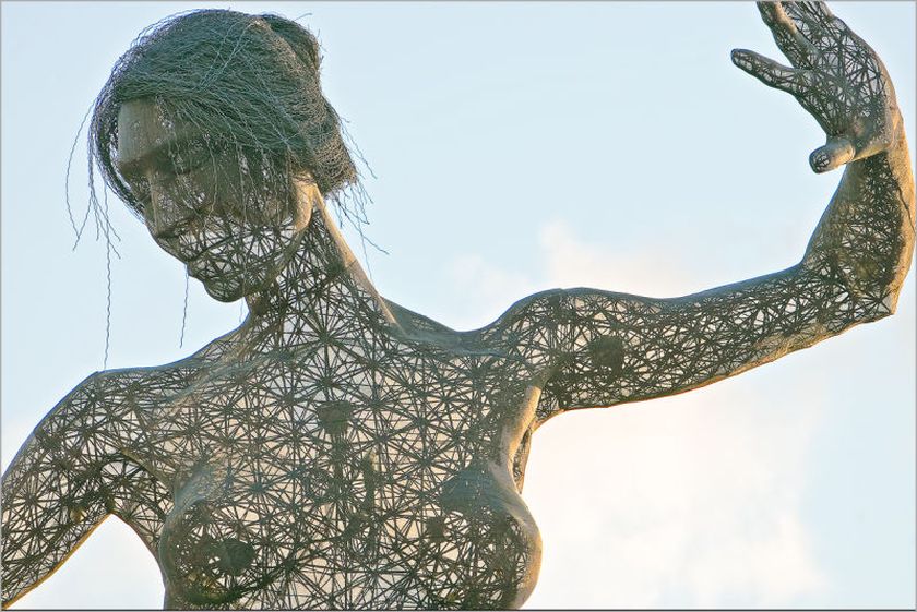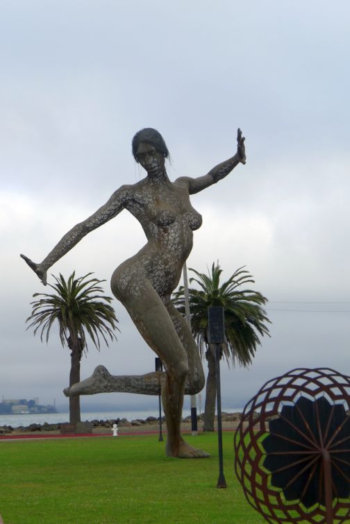 It is a sculpture of a naked woman standing on one foot as she dances, hands in the air. The sculpture is lit by 1,000 LED and I am sure I night time she looks amazing!