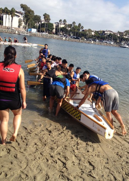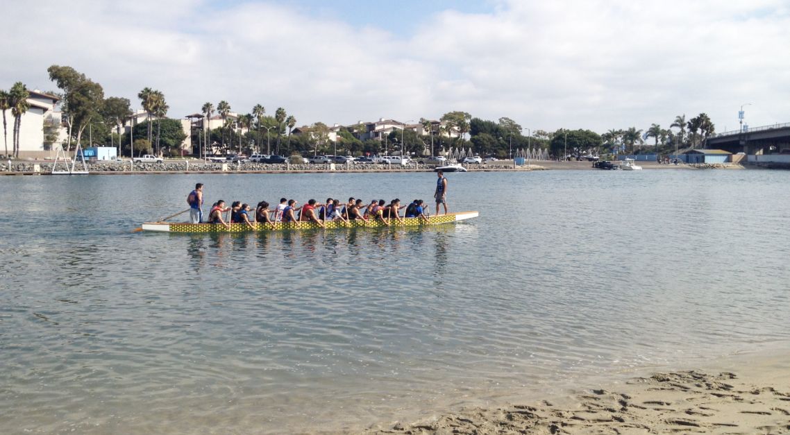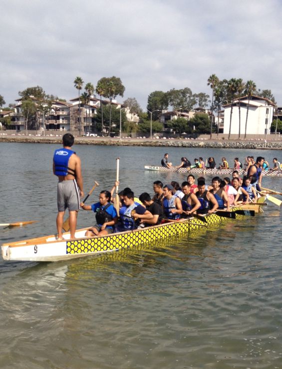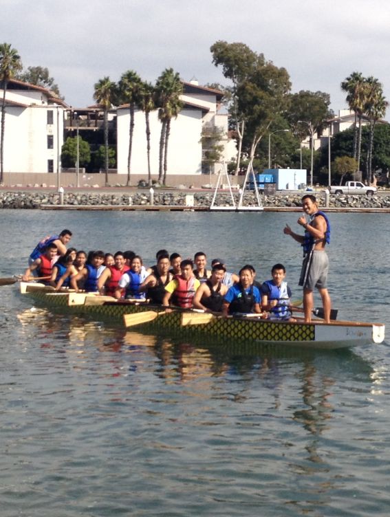 I ran over his boat to take a picture. Turned out Kevin is the captain of UC Irvine' team and he has to trained the new recruits.