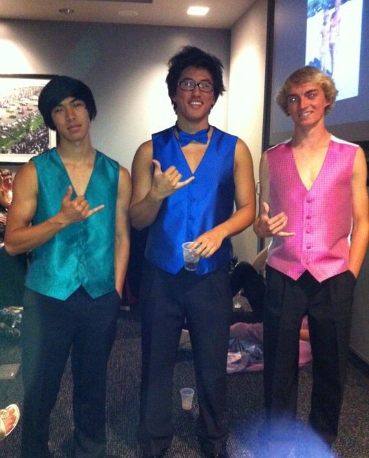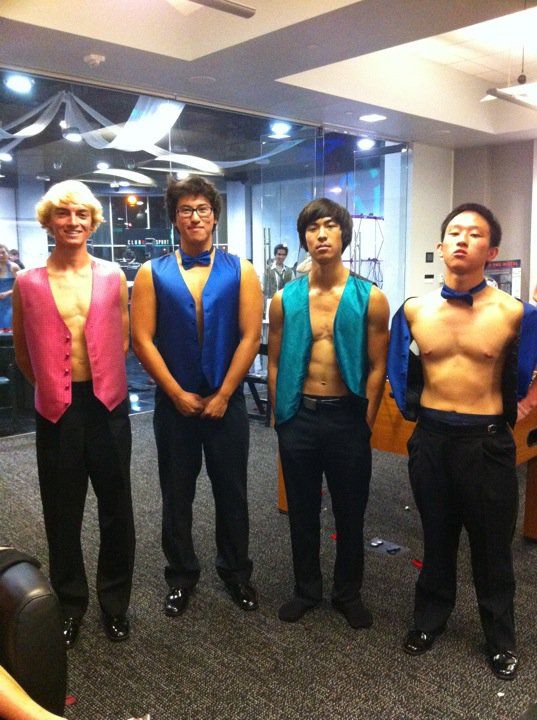 Kevin told me they danced a lot and it was so hot so they removed their shirts and ties an pose with their vest! |