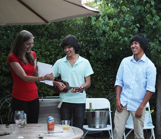 Nicky decided to write and sing a song for Kevin entitled "if I was a lady" on his Ukulele.