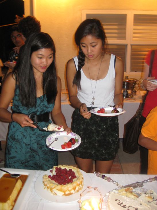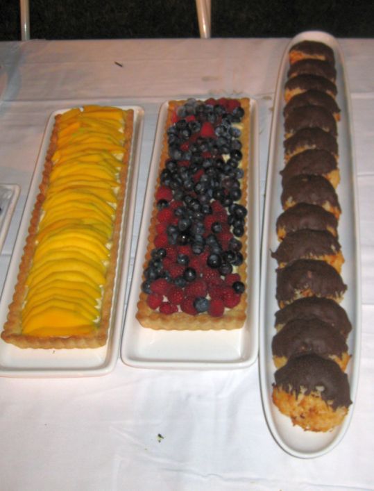 I made a mango and berries tarts. Hanh made Macaroons dipped in chocolate. |