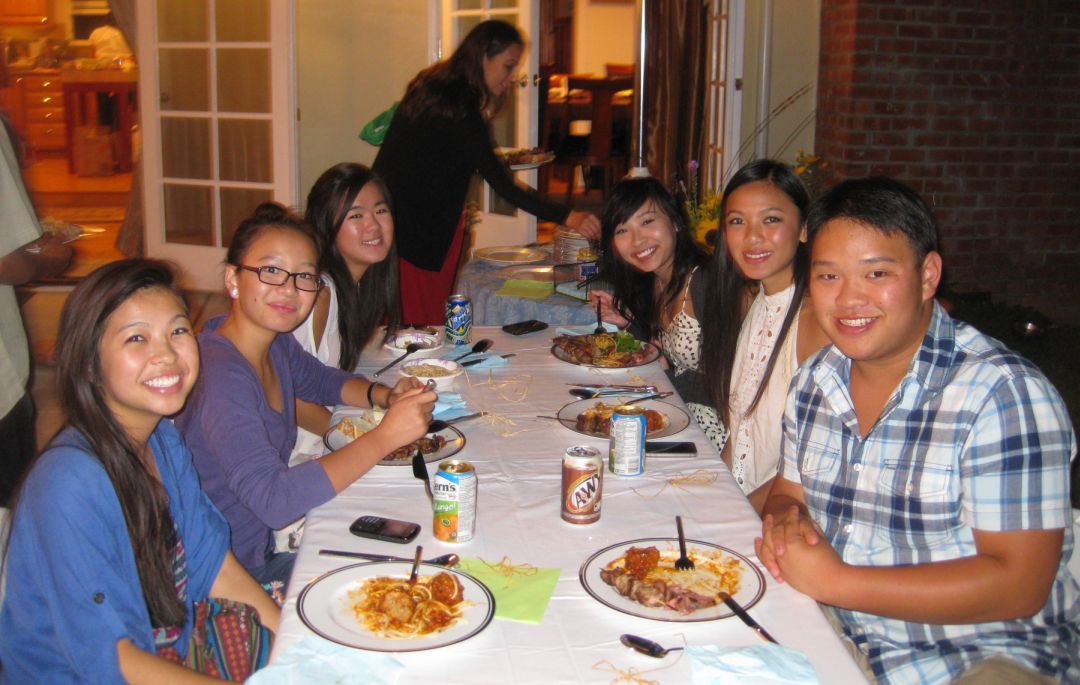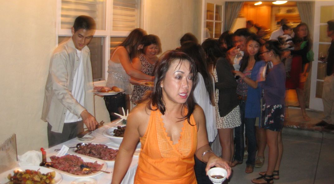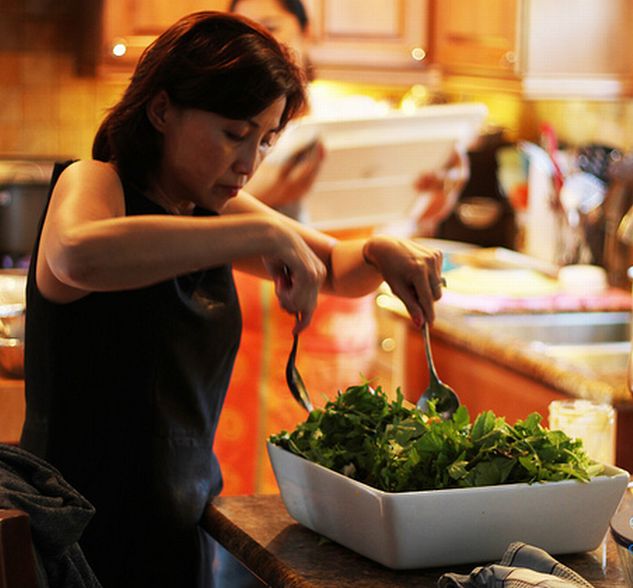 Hanh toasting the mixed salad. |