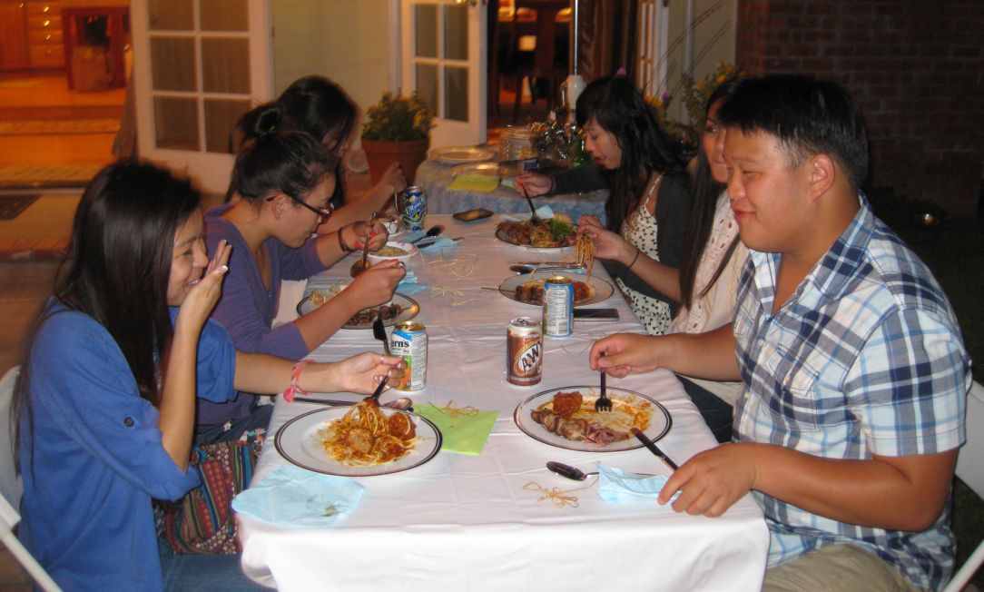 Sitting down for dinner- The kids' table.