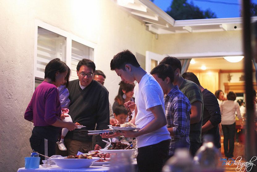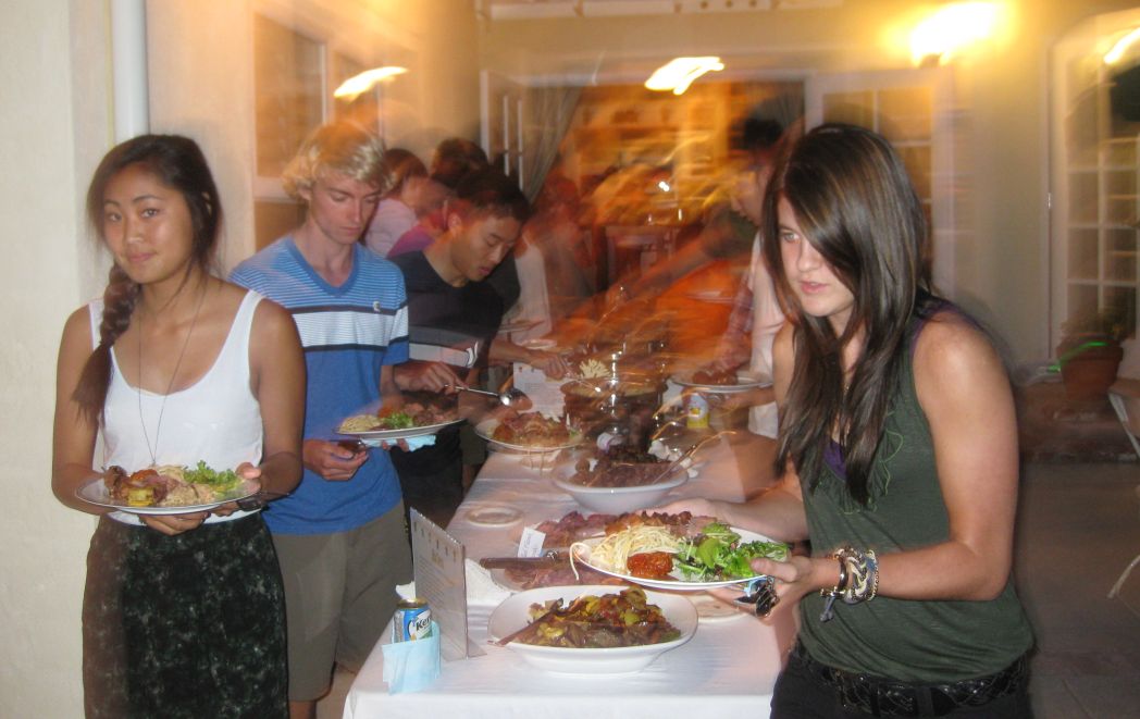 Starting the line for food.