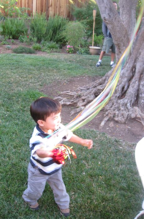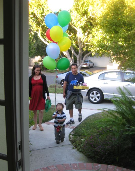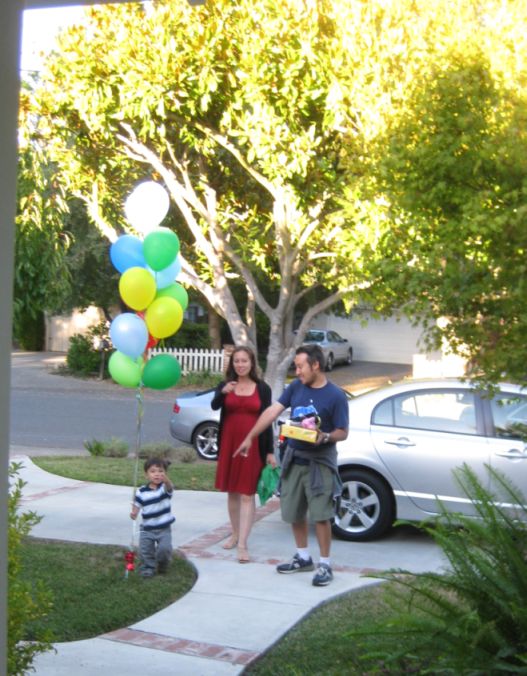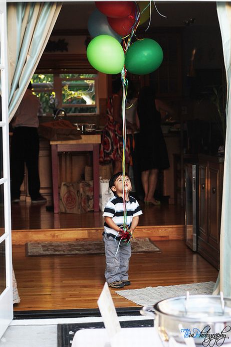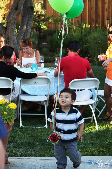Sam running around with the balloons. |