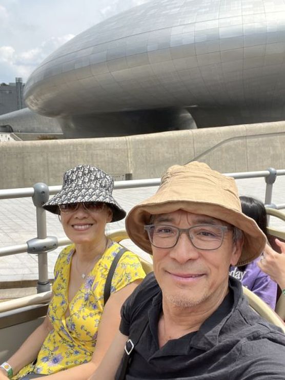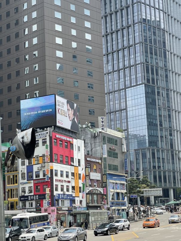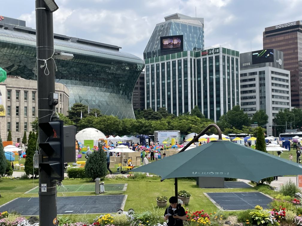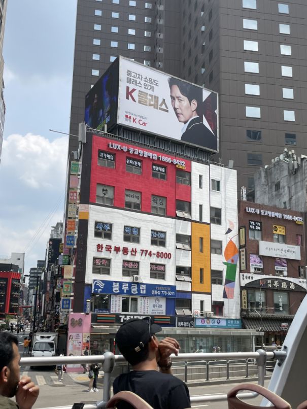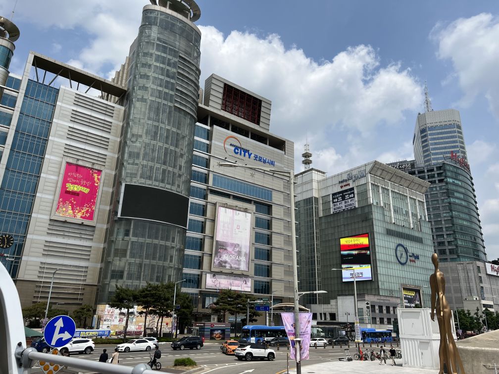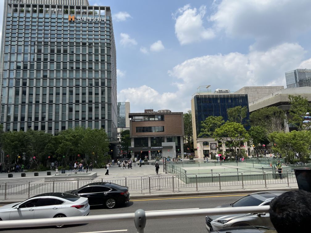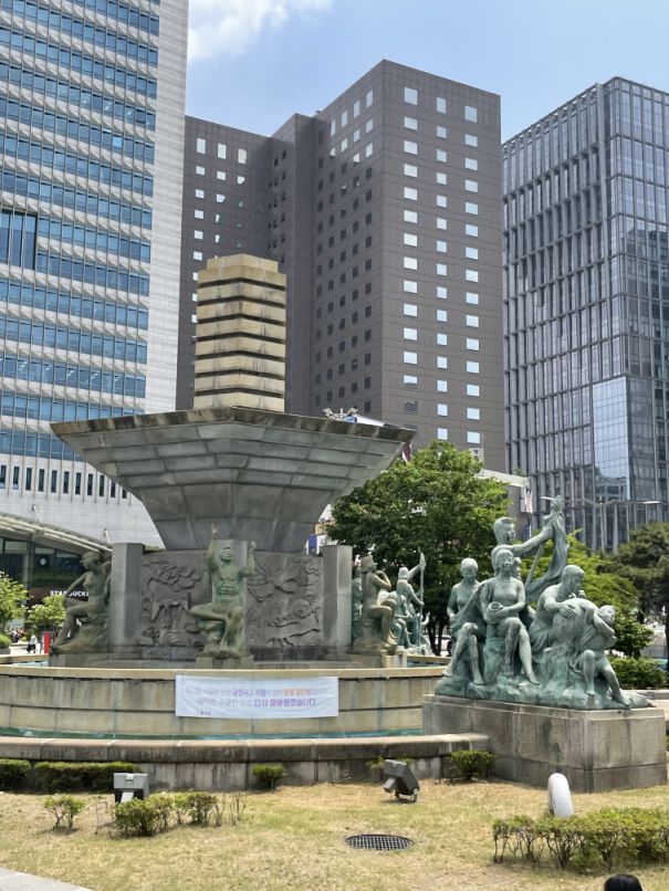The bus is now leaving and we passed by a large bronze statue in front of Dongdaemun Design Plaza (DDP)