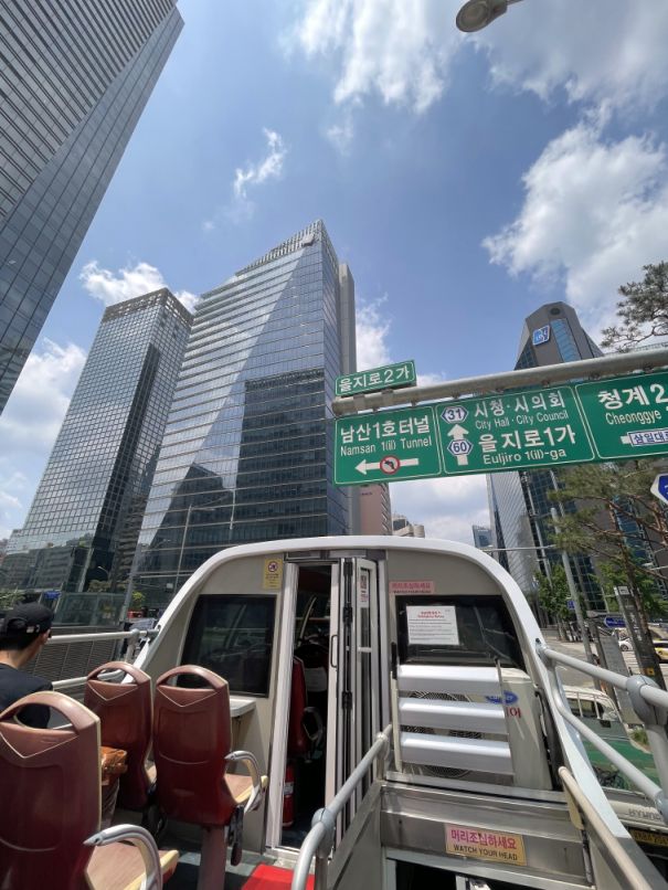City Tour Bus is a great way to see the city at a quick glance. You get to see the hot spots of Seoul form the upper lever of a bright yellow bus.