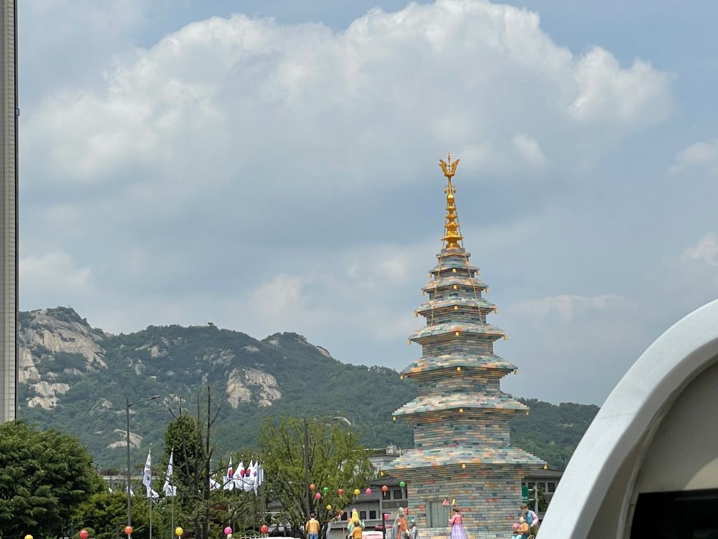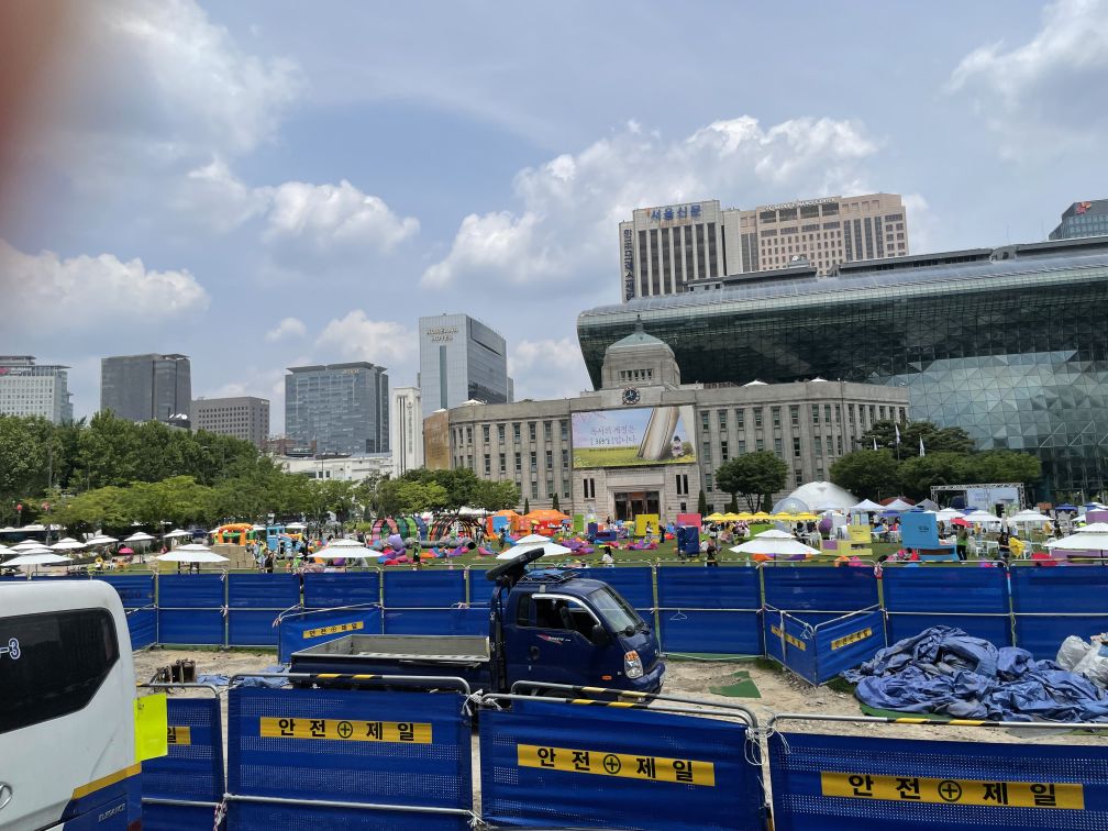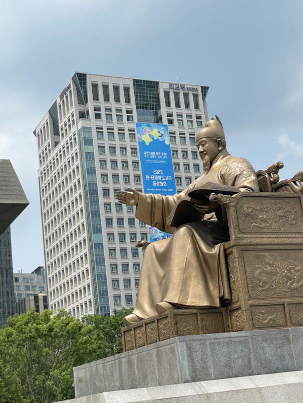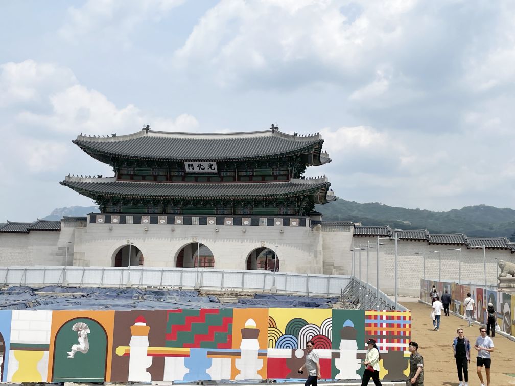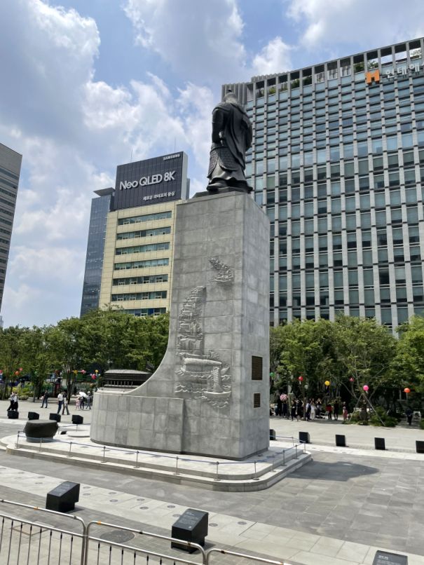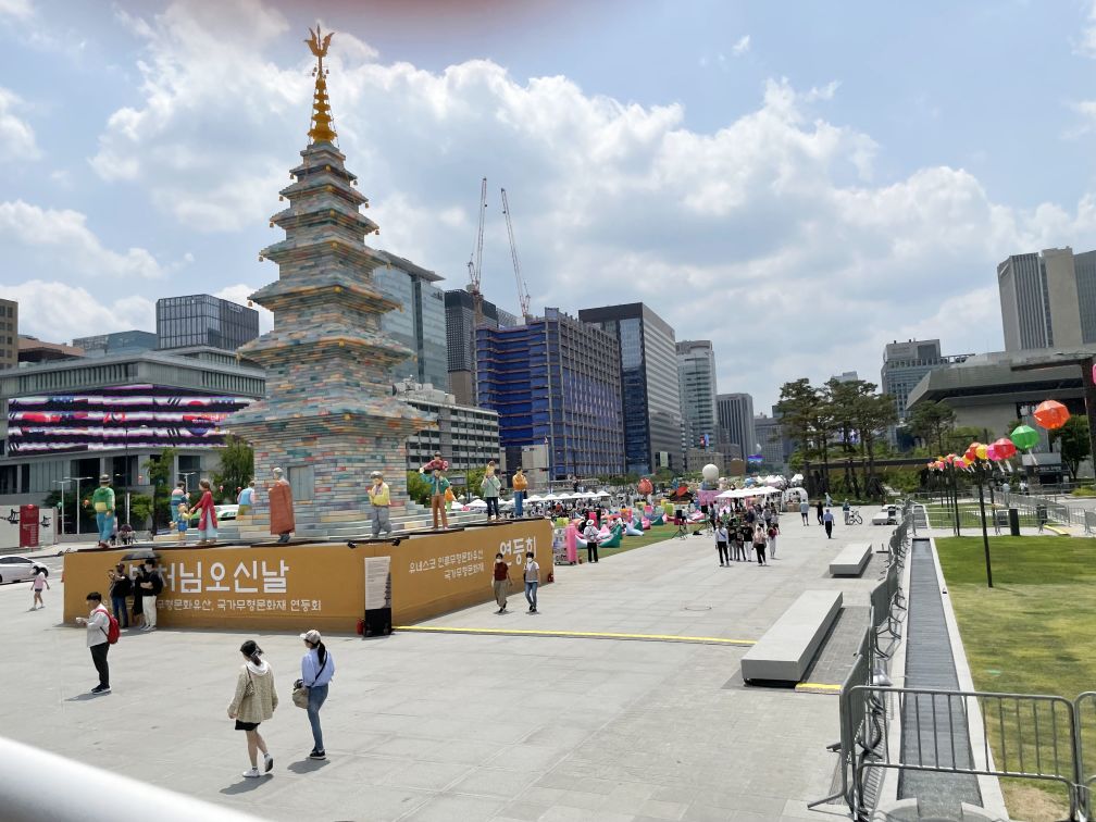 Lots of preparation with giant statues on display on Gwanghwamun square