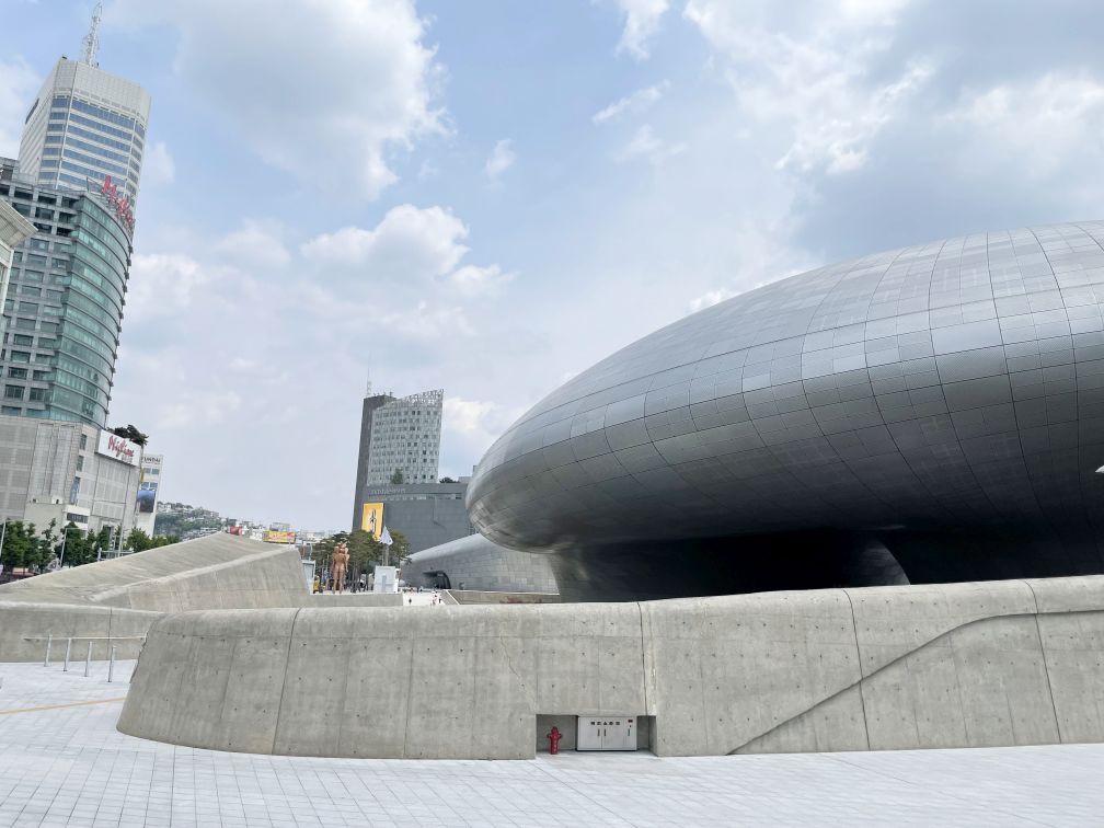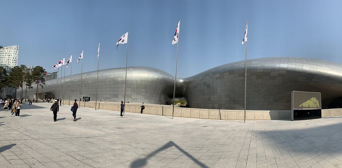 Dongdaemun Design Plaza (DDP) is a major urban development landmark in Jung-gu, Seoul.