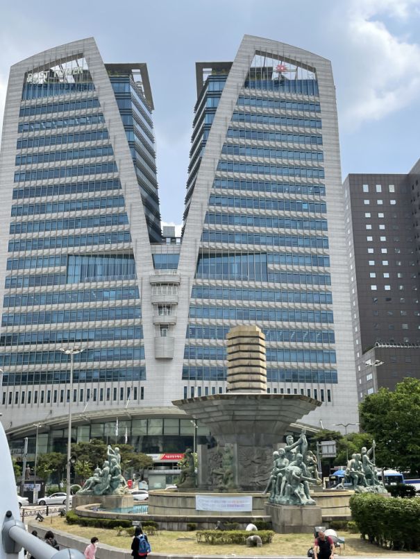 The post tower is the 20 stories building with an additional 7 floors below ground of Seoul Central Post office.