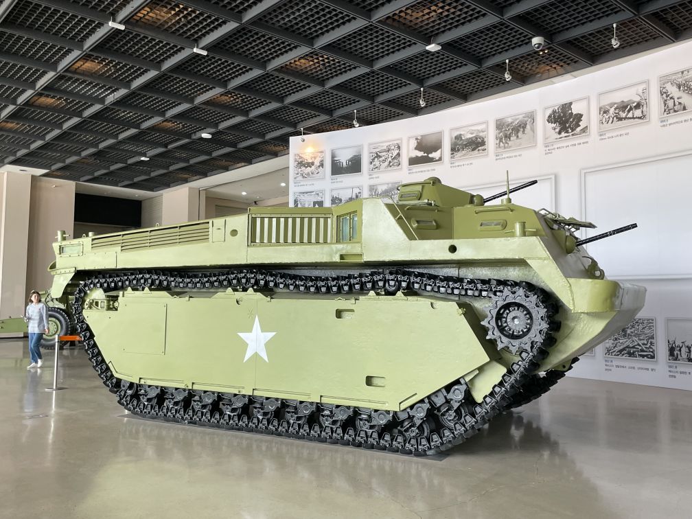 On the first floor is the Exhibition of Large Military Equipment. This exhibition room show large equipment, such as major combat weapons and aircraft of South and North Koreas in 1950.