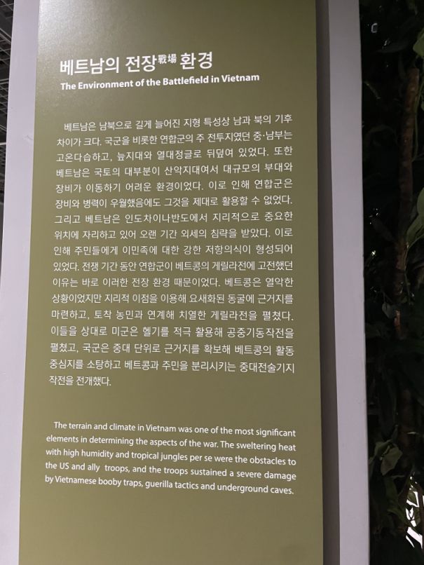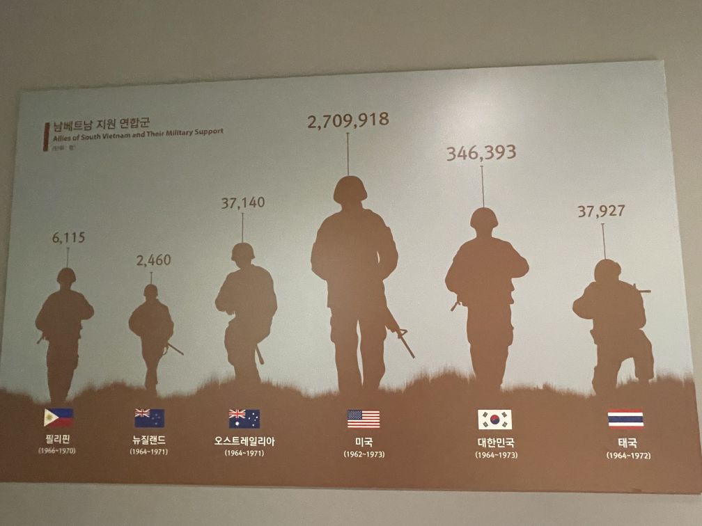 South Korea dispatched its forces to Vietnam in order to contribute to world peace and requite aids from the allies during the Korean war.