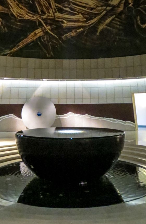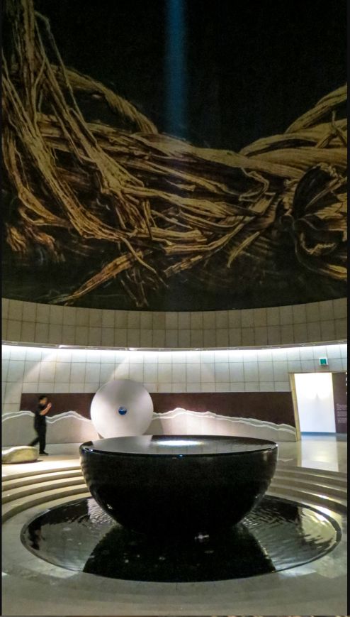 Hokuk Memorial is a water filled marble bowl in the center of the room and sunlight is refracted and filtered down onto the surface of the water. It’s a truly spectacular piece.