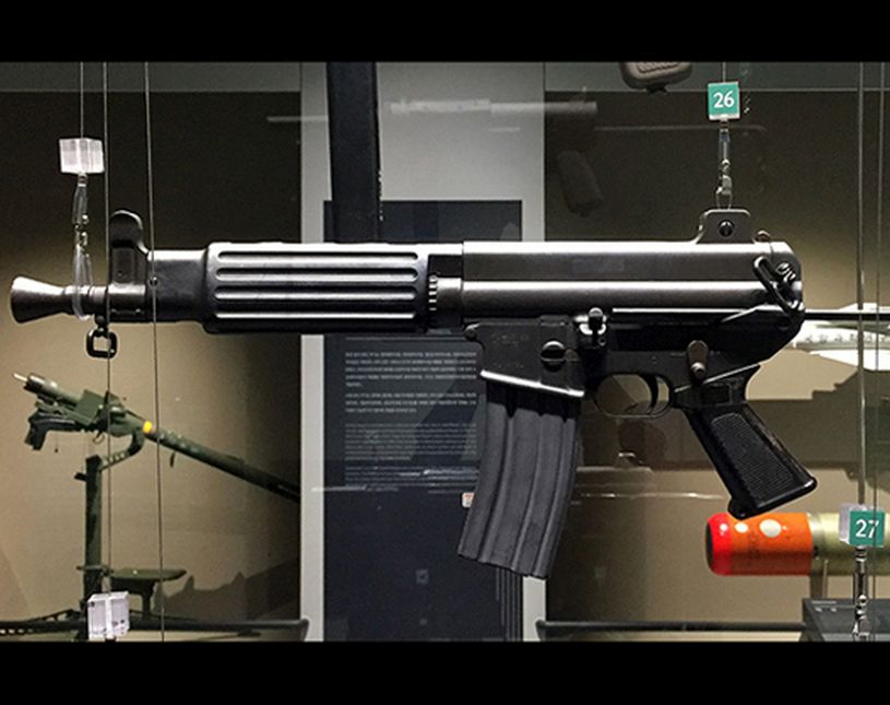 K1 Submachine Gun was undependably developed in Korea. It applied the length adjustable butt end and reduce the weight to increase portability. It is broadly used as a personal weapon for the combatants of Special forces and combat vehicle crews.