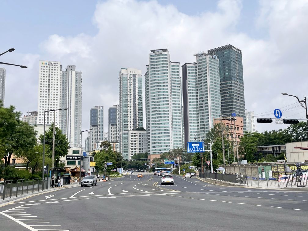 We got off the subway and on our way to the War Museum. We are in the Yongsan-dong neighborhood with lots of high rise building around.