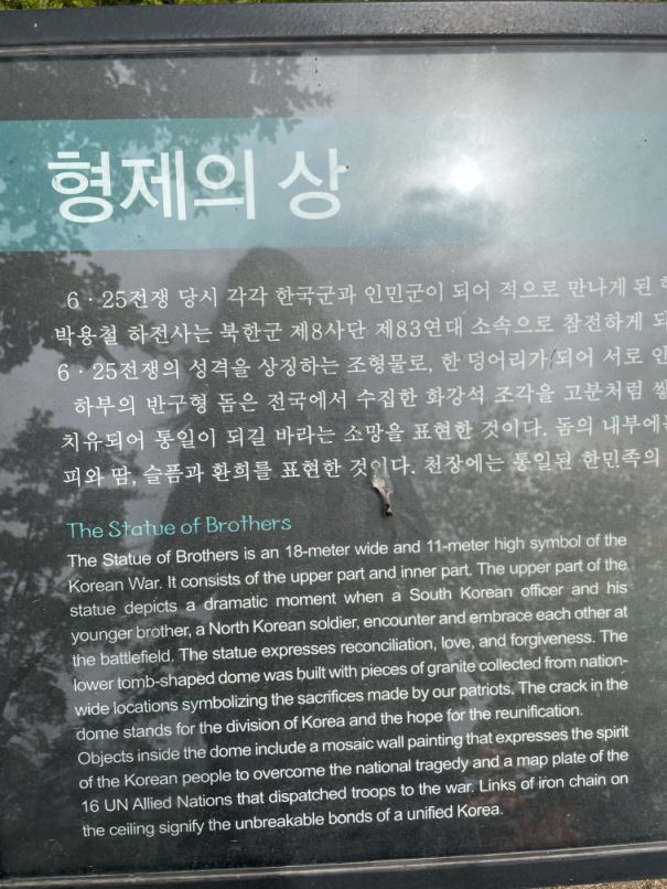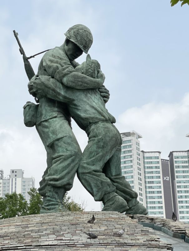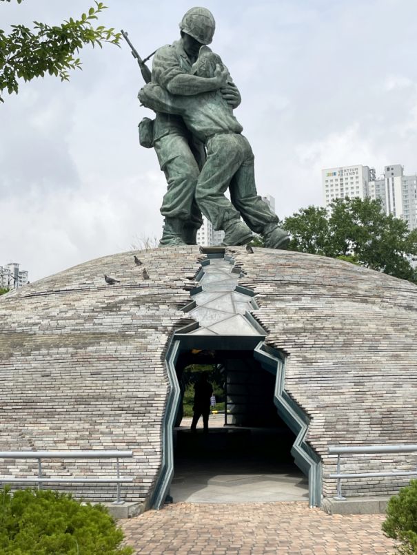 The Statue of Brothers located in the south-west corner of the outdoor exhibition area at the museum symbolizes the Korean War and the hope for reunification.
