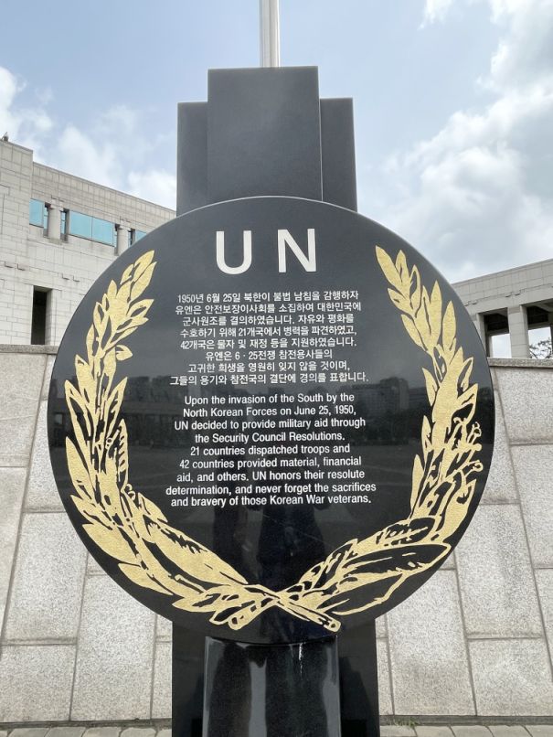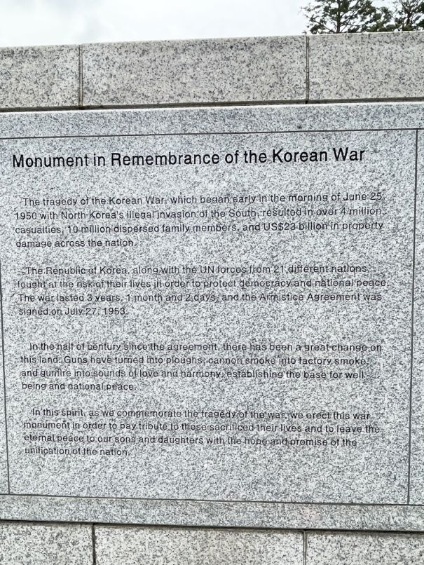 The Korean War Memorial monument was installed in 2003 to commemorate the 50th anniversary of the armistice of the Korean War to stimulate the postwar generation's security awareness.