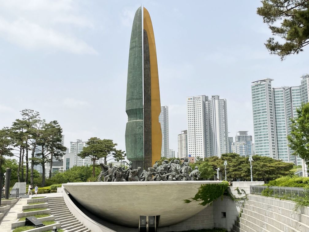 The lower part of the statue is shaped like a bomb. It was built with pieces of granite collected from locations across Korea and is symbolic of the sacrifices made by South Korean patriots.