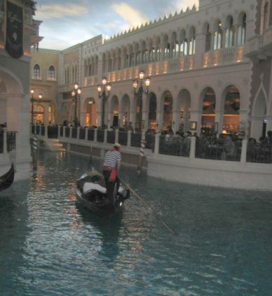 Inside the Venetian Casino hotel, a reproduction of the grand canal and the gondola ride is available just like in Venice. |