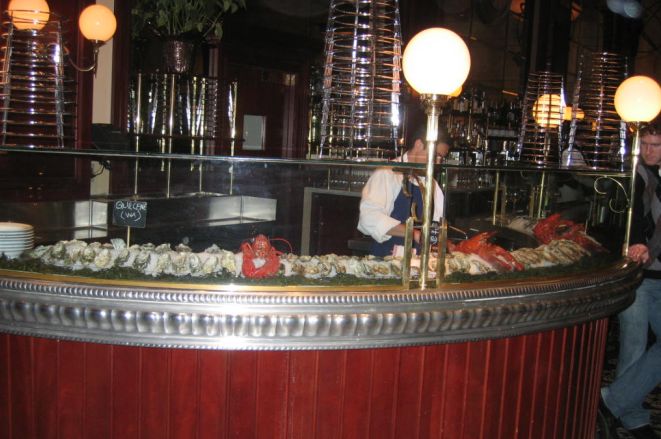 As soon as you walk in Bouchon you can't miss this magnificent French pewter bar filled with fresh sea food.