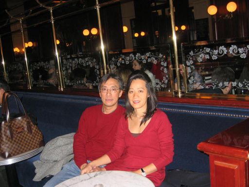 Waiting for our table to be available. While waiting I talked to one of the waiter, he told me that Bouchon usually serves about 400 to 500 plates on a single night. The waiter told me he does not stop from 5:00PM to 10:00PM. On a slow night like tonight, the day after Christmas, they are only expecting to serve about 200 plates. |