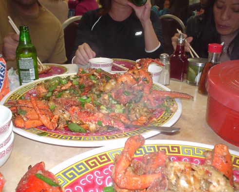 We ordered two lobsters, about 5 to 6 pounds each, and we had a real feast!