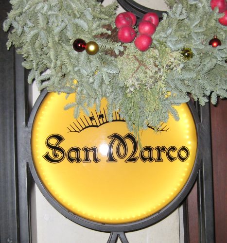 Enoteca (hidden behind the wreath) San Marco sign. |