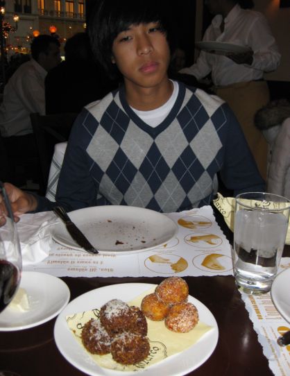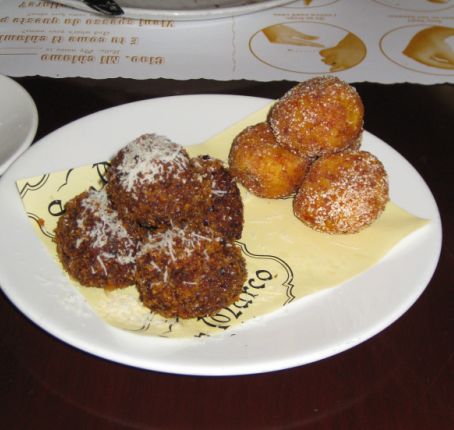 For Appetizers we ordered the Arancine (Risotto balls on the right) and the Frittelle di Prosciutto (Prosciutto balls). Both appetizers are okay. |