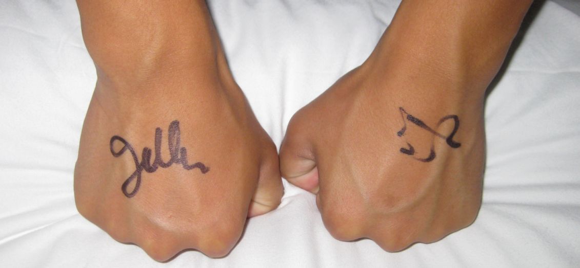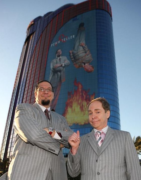 Teller's autograph is on the left on this picture and on the right is Penn's autograph. Penn is 6 foot 7 and Teller is about 5' 10".