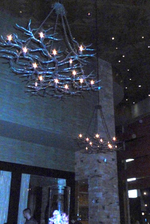 Felt like I was sitting inside a tower of a castle in France because of the wall are made of stones, and the iron forged chandeliers hanging from the ceiling. The dinning room is very masculine but at the same time if felt very intimate and cozy as well.